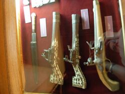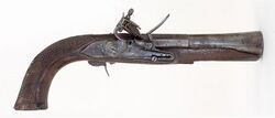 In the Nusantara archipelago, the weapon is called a tarkul, terakul, or terakol, and seems to have been preferred by cavalry due to its size. The term may refer to a blunderbuss in pistol form, but can also refer to the flintlock musket.[5]:211[6]:5 They used a flintlock mechanism, and might be derived from Dutch flintlocks which entered the area in the 17th century.[7]:64 However, it is possible that this weapon was only popular among local warriors in more recent times — the terakul was only recorded in Tuhfat al-Nafis from the 1860s.[8][5]:211–212 The manuscript mentioned that Bugis troops with chain mail and armed with terakul pemburas (dragon-blunderbusses) defeated Raja Kechil's troops armed with cannons and swords in 1721 CE.[9]:318