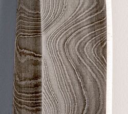 This "Modern Damascus" is made from several types of steel and iron slices welded together to form a billet, and currently, the term "Damascus" (although technically incorrect) is widely accepted to describe modern pattern-welded steel blades in the trade.[37] The patterns vary depending on how the smith works the billet.[36] The billet is drawn out and folded until the desired number of layers are formed.[36] To attain a Master Smith rating with the American Bladesmith Society that Moran founded, the smith must forge a Damascus blade with a minimum of 300 layers.[38]