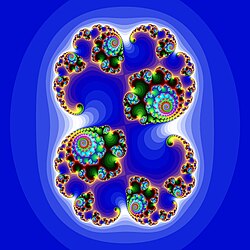 Humans, as well as some other animals, find symmetric patterns to be more beautiful.[18] Mathematically, the symmetries of an object form a group known as the symmetry group.[19] For example, the group underlying mirror symmetry is the cyclic group of two elements, . A Rorschach test is a figure invariant by this symmetry,[20] as are butterfly and animal bodies more generally (at least on the surface).[21] Waves on the sea surface possess translation symmetry: moving one's viewpoint by the distance between wave crests does not change one's view of the sea.[22] Fractals possess self-similarity.[23][24]