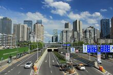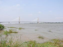 Wuhan is considered the political, economic, financial, commercial, cultural, and educational center of Central China.[16] It is a major transportation hub, with dozens of railways, roads, and expressways passing through the city and connecting to other major cities.[24] Because of its key role in domestic transportation, Wuhan is sometimes referred to as "the Chicago of China" by foreign sources.[3][4][5] The "Golden Waterway" of the Yangtze River and the Han River traverse the urban area and divide Wuhan into the three districts of Wuchang, Hankou, and Hanyang. The Wuhan Yangtze River Bridge crosses the Yangtze in the city. The Three Gorges Dam, the world's largest power station in terms of installed capacity, is located nearby. Historically, Wuhan has suffered risks of flooding,[25] prompting the government to alleviate the situation by introducing ecologically friendly absorption mechanisms.[26]