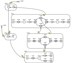 Accordingly, valid MFM syntax requires a transport or a barrier linking two functions of the remaining four types. In addition to the flow within one perspective (mass or energy) MFM connects the influence between mass and energy by the means-end relations (mediate and producer-product) as well as the causal links introduced by the way the system is controlled by using separate control flow structures.