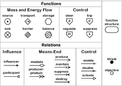 MFM describes the function of a system as a means for a specific end in terms of mass and energy flow. The flow is the defining element for the underlying function concepts. The concepts of transport and barrier play the most important role, as they connect pairs of the other function types, reflecting the physical flows in the system. Sink and source functions mark the boundary of the considered system and the end or beginning of a flow. Storage and balance concepts can both be collection or splitting points for multiple flow paths.