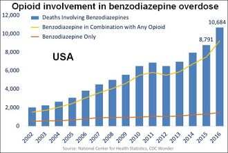 - ↑ "Increasing Benzodiazepine Prescriptions and Overdose Mortality in the United States, 1996-2013". American Journal of Public Health 106 (4): 686–8. April 2016. doi:10.2105/AJPH.2016.303061. PMID 26890165.