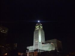 - ↑ Rasmussen, Cecilia (September 9, 2001). "City Hall Beacon to Shine Again". Los Angeles Times: p. B4. https://pqasb.pqarchiver.com/latimes/doc/421650303.html?FMT=ABS&FMTS=ABS:FT&type=current&date=Sep+9,+2001&author=Rasmussen,+Cecilia&pub=Los+Angeles+Times&edition=&startpage=&desc=L.+A.+THEN+AND+NOW;+City+Hall+Beacon+to+Shine+Again.