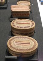 A set of traditional hand-woven native Indian Nuu-chah-nulth peoples' baskets (Indigenous peoples of the Pacific Northwest Coast of Canada)