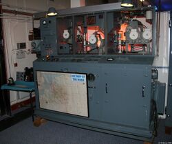 The airborne side of the Gee Mk. II system consisted of two portions, the R1355 radio receiver, and the Indicator Unit Type 62 (or 62A) oscilloscope. The two were connected by two thick cables, one of which carried the video signal, and the second carried the power to the Indicator, the power supply being built into the receiver to save space on the display side.[29] A "tropicalized" version of the system was also produced, with the R3645 receiver and Indicator Unit Type 299, which moved the latter's power supply into the display unit.