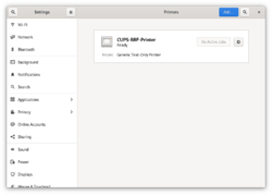In GNOME starting from GNOME 3, CUPS printing has been handled in the Settings application, which is part of the GNOME Core Applications. The GUI can add CUPS printers and manage CUPS printers and queues.[39] Before GNOME 3, the GNOME Print Settings (formerly called CUPS Manager) were used to perform these tasks.[40]