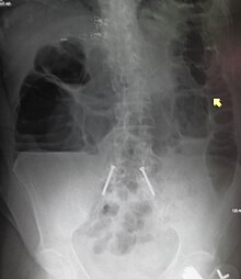 Some causes of bowel obstruction may resolve spontaneously;[16] many require operative treatment.[17] In adults, frequently the surgical intervention and the treatment of the causative lesion are required. In malignant large bowel obstruction, endoscopically placed self-expanding metal stents may be used to temporarily relieve the obstruction as a bridge to surgery,[18] or as palliation.[19] Diagnosis of the type of bowel obstruction is normally conducted through initial plain radiograph of the abdomen, luminal contrast studies, computed tomography scan, or ultrasonography prior to determining the best type of treatment.[20]