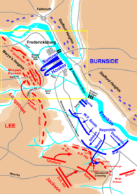 The Battle of Fredricksburg was one of the great victores of Confederate General Robert E. Lee in December, 1862, during the American Civil War. Both sides suffered heavy casualties. It was an enormous military and psychological disaster for the Union cause, leading to the removal of Major General Ambrose Burnside from command of the Army of the Potomac.
