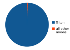 Triton is the largest natural satellite of the planet Neptune, and was the first Neptunian moon to be discovered, on October 11, 1846, by English astronomer William Lassell. It is the only large moon in the Solar System with a retrograde orbit, an orbit in the direction opposite to its planet's rotation.[3][12] Because of its retrograde orbit and composition similar to Pluto, Triton is thought to have been a dwarf planet, captured from the Kuiper belt.[13]