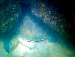 Turtles can rest or sleep underwater for several hours at a time, but submergence time is much shorter while diving for food or to escape predators. Breath-holding ability is affected by activity and stress, which is why turtles quickly drown in shrimp trawlers and other fishing gear.[111] During the night while sleeping and to protect themselves from potential predators, the adults wedge themselves under rocks below the surface and under ledges in reefs and coastal rocks. Many green sea turtles have been observed returning to the same sleeping location over successive nights.[112]