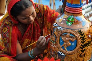 From Handwiki Pottery in the Indian subcontinent has an ancient history and is one of the most tangible and iconic elements of Indian art. Evidence of pottery has been found in the early settlements of Lahuradewa and later the Indus Valley Civilization. Today, it is a cultural art that is still practiced extensively in Indian subcontinent. Until recent times all Indian pottery has been earthenware, including terracotta.