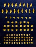 The most valuable indigenous sources for reconstructing an accurate chronology of Arsacid rulers are the metal drachma coins issued by each ruler.[177] These represent a "transition from non-textual to textual remains," according to historian Geo Widengren.[178] Other Parthian sources used for reconstructing chronology include cuneiform astronomical tablets and colophons discovered in Babylonia.[179] Indigenous textual sources also include stone inscriptions, parchment and papyri documents, and pottery ostraca.[178] For example, at the early Parthian capital of Mithradatkert/Nisa in Turkmenistan, large caches of pottery ostraca have been found yielding information on the sale and storage of items like wine.[180] Along with parchment documents found at sites like Dura-Europos, these also provide valuable information on Parthian governmental administration, covering issues such as taxation, military titles, and provincial organization.[181]