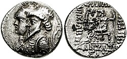 Antiochus VII Sidetes (r. 138–129 BC), a brother of Demetrius, assumed the Seleucid throne and married the latter's wife Cleopatra Thea. After defeating Diodotus Tryphon, Antiochus initiated a campaign in 130 BC to retake Mesopotamia, now under the rule of Phraates II (r. c. 132–127 BC). The Parthian general Indates was defeated along the Great Zab, followed by a local uprising where the Parthian governor of Babylonia was killed. Antiochus conquered Babylonia and occupied Susa, where he minted coins.[45] After advancing his army into Media, the Parthians pushed for peace, which Antiochus refused to accept unless the Arsacids relinquished all lands to him except Parthia proper, paid heavy tribute, and released Demetrius from captivity. Arsaces released Demetrius and sent him to Syria, but refused the other demands.[46] By spring 129 BC, the Medes were in open revolt against Antiochus, whose army had exhausted the resources of the countryside during winter. While attempting to put down the revolts, the main Parthian force swept into the region and killed Antiochus at the Battle of Ecbatana in 129 BC. His body was sent back to Syria in a silver coffin; his son Seleucus was made a Parthian hostage[47] and a daughter joined Phraates' harem.[48]