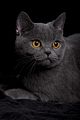 Cats have excellent night vision and can see at only one-sixth the light level required for human vision.[51]:43 This is partly the result of cat eyes having a tapetum lucidum, which reflects any light that passes through the retina back into the eye, thereby increasing the eye's sensitivity to dim light.[65] Large pupils are an adaptation to dim light. The domestic cat has slit pupils, which allow it to focus bright light without chromatic aberration.[66] At low light, a cat's pupils expand to cover most of the exposed surface of its eyes.[67] The domestic cat has rather poor color vision and only two types of cone cells, optimized for sensitivity to blue and yellowish green; its ability to distinguish between red and green is limited.[68] A response to middle wavelengths from a system other than the rod cells might be due to a third type of cone. This appears to be an adaptation to low light levels rather than representing true trichromatic vision.[69] Cats also have a nictitating membrane, allowing them to blink without hindering their vision.