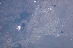 Nairobi is situated between the cities of Kampala and Mombasa. As Nairobi is adjacent to the eastern edge of the Rift Valley, minor earthquakes and tremors occasionally occur. The Ngong Hills, located to the west of the city, are the most prominent geographical feature of the Nairobi area. Mount Kenya is situated north of Nairobi, and Mount Kilimanjaro is towards the south-east.[39]