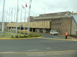 In 1972, the World Bank approved funds for further expansion of the then Nairobi Airport (now Jomo Kenyatta International Airport), including a new international and domestic passenger terminal building, the airport's first dedicated cargo and freight terminal, new taxiways, associated aprons, internal roads, car parks, police and fire stations, a State Pavilion, airfield and roadway lighting, fire hydrant system, water, electrical, telecommunications and sewage systems, a dual carriageway passenger access road, security, drainage and the building of the main access road to the airport (Airport South Road). The cost of the project was more than US$29 million, US$111.8 million in 2013 dollars.[29] On 14 March 1978, construction of the terminal building was completed on the other side of the airport's single runway and opened by President Jomo Kenyatta less than five months before his death. The airport was renamed Jomo Kenyatta International Airport in memory of its first president.
