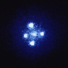 Walsh, D.; Carswell, R. F.; Weymann, R. J. (1979), "0957 + 561 A, B: twin quasistellar objects or gravitational lens?", Nature279 (5712): 381–4, doi:10.1038/279381a0, PMID 16068158, Bibcode: 1979Natur.279..381W