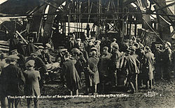 Pierre-Francois Tubeuf laid the foundations of the modern industry in France, starting in 1770 in Languedoc.[33] Labor unions emerged with an emphasis on the safety issue in the late 19th century. In 1885, there were 175 injuries per thousand workers per year. Deaths were low in most years 2 per 1000 workers), but major disaster was always a threat. 1099 men died in the Courrières mine disaster of 1906.[34] The campaign for mine safety enabled miners to break from their peasant psychology and create solidarity that came from sharing dangerous work, and to develop a working-class consciousness. Unions gain strength by setting up a system of worker elected mine-safety delegates. The national government encouraged the mine safety movement as a means of limiting strife in the sometimes turbulent coal fields.[35] Nevertheless, strikes remained very common, and coal miners took the lead in political organization.[36] Germany seized control of some mining districts in the First World War, leaving them devastated. Polish, Spanish and other immigrants were brought in to provide a stable labor force at the end of the war.[37]