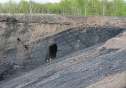 The first coal mining in Nova Scotia began in the 18th century with small hand-dug mines close to the sea at Joggins, Nova Scotia and in the Sydney area of Cape Breton Island. Large scale coal mining began in the late 1830s when the General Mining Association (GMA), a group of English mining investors, obtained a coal mining monopoly in Nova Scotia. They imported the latest in mining technology including steam water pumps and railways to develop large mines in the Stellarton area of Pictou County, Nova Scotia, including the Foord Pit which by 1866 was the deepest coal mine in the world.[24] Coal mining also developed in Springhill and Joggins in Cumberland County, Nova Scotia. After the GMA monopoly expired, the largest and longest lasting mines developed at Cape Breton in Nova Scotia. Nova Scotia was the major supplier of Canadian coal until 1945.[25] At its peak in 1949 25,000 miners dug 17 million metric tons of coal from Nova Scotian mines. The miners, who lived in company towns, became politically active in left-wing politics during labour struggles for safety and fair wages. Westray Mine near Stellarton closed in 1992 after an explosion killed 26 miners. All the subsurface mines were closed by 2001, although some open pit coal mining continues near Stellarton. The Nova Scotia Museum of Industry at Stellarton explores the history of mining in the province from its location on the site of the Foord Pit.