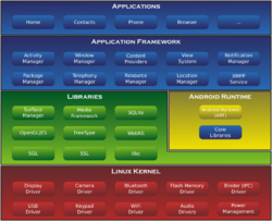 Over 70 percent of Android smartphones run Google's ecosystem; some with vendor-customized user interface and software suite, such as TouchWiz and later One UI by Samsung, and HTC Sense.[6] Competing Android ecosystems and forks include Fire OS (developed by Amazon), ColorOS by OPPO, OriginOS by vivo and MagicUI by Honor or custom ROM such as LineageOS. However, the "Android" name and logo are trademarks of Google which imposes standards to restrict the use of Android branding by "uncertified" devices outside their ecosystem.[7][8]