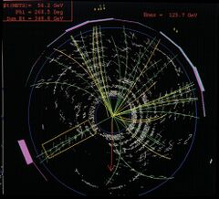 A jet definition includes a jet algorithm and a recombination scheme.[1] The former defines how some inputs, e.g. particles or detector objects, are grouped into jets, while the latter specifies how a momentum is assigned to a jet. For example, jets can be characterized by the thrust. The jet direction (jet axis) can be defined as the thrust axis. In particle physics experiments, jets are usually built from clusters of energy depositions in the detector calorimeter. When studying simulated processes, the calorimeter jets can be reconstructed based on a simulated detector response. However, in simulated samples, jets can also be reconstructed directly from stable particles emerging from fragmentation processes. Particle-level jets are often referred to as truth-jets. A good jet algorithm usually allows for obtaining similar sets of jets at different levels in the event evolution. Typical jet reconstruction algorithms are, e.g., the anti-kT algorithm, kT algorithm, cone algorithm. A typical recombination scheme is the E-scheme, or 4-vector scheme, in which the 4-vector of a jet is defined as the sum of 4-vectors of all its constituents.