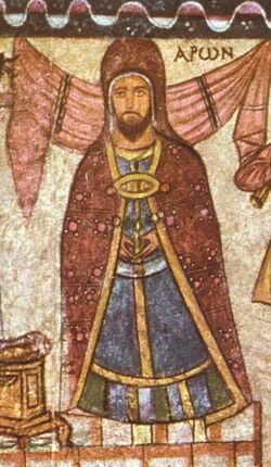 The Quran and rabbinic literature are replete with references to the special status of Aaron and his progeny.[12] In verses 20:29–32 of the Quran, Moses asks God to include his brother Aaron in his prophetic mission.[16] His prayer is answered by God, as evidenced by verses 20:36–42, 25:35,[12] and 28:35.[17] Aaron thus becomes the chosen associate of Moses in his prophetic mission and in revelation,[12][18] as described in verses 21:48–9 and 2:248 of the Quran.[18] In Hebrew Bible, Aaron performs miracles and is entrusted with the esoteric knowledge of the scripture.[12]