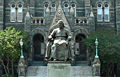 Georgetown's three urban campuses feature traditional collegiate architecture and layout, but prize their green spaces and environmental commitment. The main campus is known for Healy Hall, designated a National Historic Landmark. Academically, Georgetown is divided into four undergraduate schools and four graduate schools, with nationally recognized programs and faculty in international relations, law, and medicine.