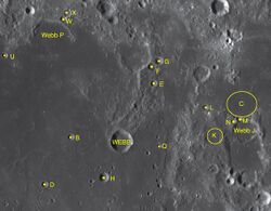 By convention these features are identified on lunar maps by placing the letter on the side of the crater midpoint that is closest to Webb.