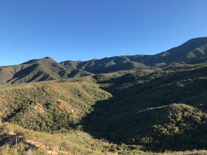 Multiple trails of note: The Wild Horse Trail, on the left, gains elevation relatively slowly. The Dripping Springs Trail (about 6.8 miles long), begins a steady and very crooked ascent of Agua Tibia Mountain's north flank. From the crest of the mountain, the Palomar-McGee Trail (about 5.5 miles long) enters a Forest land, descends to Crosley Saddle, and continues south near Eagle Crag before branching off into the Wilderness.