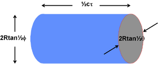First find the magnitude of the clutter return. Assume that the clutter fills the cell containing the target, that scatterers are statistically independent and that the scatterers are uniformly distributed through the volume. The clutter volume illuminated by a pulse can be calculated from the beam widths and the pulse duration, Figure 1. If c is the speed of light and is the time duration of the transmitted pulse then the pulse returning from a target is equivalent to a physical extent of c, as is the return from any individual element of the clutter. The azimuth and elevation beamwidths, at a range , are and respectively if the illuminated cell is assumed to have an elliptical cross section.