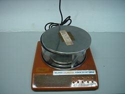 A balance (also balance scale, beam balance, or laboratory balance) is used to measure the mass of an object. In its conventional form, this class of measuring instrument compares the sample, placed in a weighing pan (weighing basin) and suspended from one end of a beam with a standard mass (known mass) or combination of standard masses in a scale pan (scale basin) suspended from the other end. To weigh an object in the measuring pan, standard weights are added to the scale pan until the beam is in equilibrium. Then, a slider weight—usually present—is moved along a scale on or parallel to the beam (and attached to it) until fine balance is achieved. The slider position gives a fine correction to the mass value.