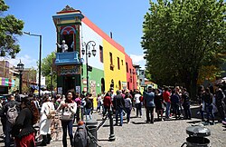 Examples include: the Paris Group – so named for being influenced by the School of Paris – constituted by Antonio Berni, Aquiles Badi, Lino Enea Spilimbergo, Raquel Forner and Alfredo Bigatti, among others; and[184] the La Boca artists – including Benito Quinquela Martín and Alfredo Lazzari, among others – who mostly came from Italy or were of Italian descent, and usually painted scenes from working-class port neighborhoods.[185] During the 1960s, the Torcuato di Tella Institute – located in Florida Street – became a leading local center for pop art, performance art, installation art, conceptual art, and experimental theater; this generation of artists included Marta Minujín, Dalila Puzzovio, David Lamelas, Clorindo Testa and Diana Dowek.