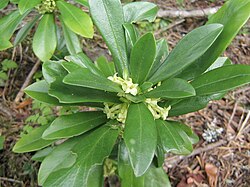 The undergrowth in the mixed beech forest is home to shrubs such as mountain ash (Sorbus aucuparia),[12] alpine laburnum (Laburnum alpinum), broad-leaved spindle (Euonymus latifolius) as well as small shrubby plants such as blueberry (Vaccinium myrtillus),[12] heather (Calluna vulgaris), scorpion senna (Hippocrepis emerus), and Daphne laureola. Herbaceous plants in the forest include the wood sorrel (Oxalis acetosella),[12] false lily of the valley (Maianthemum bifolium), liverwort (Hepatica nobilis), purple lettuce (Prenanthes purpurea), European goldenrod (Solidago virgaurea), sweet woodruff (Asperula odorata), Solomon's seal (Polygonatum multiflorum), and sanicle (Sanicula europaea).