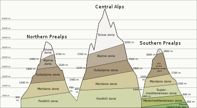 The life zones of the Eastern and Central Alps are:[5][6][7][8][9]