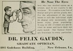 Pince-nez are believed to have appeared in the 1840s, but in the latter part of the century there was a great upsurge in the popularity of the pince-nez for both men and women. Gentlemen wore any style which suited them—heavy or delicate, round, or oval, straight, or drooping—usually on a ribbon, cord, or chain about the neck or attached to the lapel. Ladies more often than not wore the oval rimless style on a fine gold chain which could be reeled automatically into a button-size eyeglass holder pinned to the dress. Whatever the disadvantage of the pince-nez, it was convenient.
