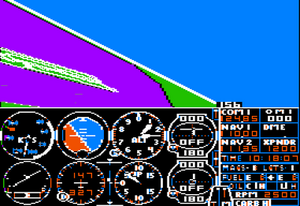 After the release of subLOGIC's Fight Simulator for the IBM PC, subLOGIC backported its improvements to other computers as Flight Simulator II.[1] This version, like the Microsoft release, did away with wireframe graphics for solid colors, and featured real-world scenery (although limited to a few areas in the United States). It also introduced simulator add-ons, although not in the form it is today, as subLOGIC also included functionality to load additional scenery from floppy disks, thus making it possible for a user to virtually fly in his or her own backyard.