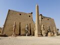 Entrance of the Luxor Temple, western façade; a pair of obelisks usually stood in front of a pylon; the 2nd obelisk (the Luxor Obelisk, 23 metres (75 ft) high, not shown) had been moved to France.
