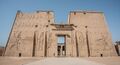 In ancient Egyptian religion, the pylon mirrored the hieroglyph akhet 'horizon', which was a depiction of two hills "between which the sun rose and set".[2] Consequently, it played a critical role in the symbolic architecture of a building associated with the place of re-creation and rebirth.