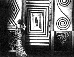 Most of the futuristic-themed films of this period have been lost, but critics cite Thaïs (1917) by Anton Giulio Bragaglia as one of the most influential, serving as the main inspiration for German Expressionist cinema in the following decade.[39] Thaïs was born on the basis of the aesthetic treatise Fotodinamismo futurista (1911), written by the same author. The film, built around a melodramatic and decadent story, actually reveals multiple artistic influences different from Marinett's futurism; the secessionist scenographies, the liberty furniture,[39] and the abstract and surreal moments contribute to create a strong formal syncretism. Thaïs is the only surviving example of the 1910s Italian futurist cinema to date (35 min. of the original 70 min.).[40]