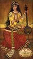 A woman playing the kamancheh. Detail from a wall painting in which Mohammad Ali Shah Qajar is surrounded by musicians and dancers. Painted by Abuʾl-Qasim, dated 1816.[12]