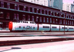 In 1968, CN introduced a new high-speed train, the United Aircraft Turbo, which was powered by gas turbines instead of diesel engines. It made the trip between Toronto and Montreal in four hours, but was not entirely successful because it was somewhat uneconomical and not always reliable. The trainsets were retired in 1982 and later scrapped at Metrecy, in Laval, Quebec.