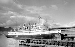 Swan Hunter and Wigham Richardson of Wallsend, England, built Prince George and Prince Rupert for the Grand Trunk Pacific Railway in 1910.[50] In 1930 Cammell Laird of Birkenhead, England, built Prince David, Prince Henry and Prince Robert.[50] Prince Henry was sold in 1937.[51] Prince George was destroyed by fire in 1945. Prince David and Prince Robert were requisitioned in 1939 as Royal Canadian Navy armed merchant cruisers, converted into landing ships in 1943, and sold in 1948.[51] In 1948 a second Prince George was built by Yarrows Limited, becoming CN's sole remaining Pacific Coast passenger liner. She was switched from scheduled routes to pleasure cruises, and was the last CN ship that served the west coast. After a fire in 1975 she was sold in 1976 (first to British Columbia Steamship Company and finally Wong Brother Enterprises)[51] before finally being sold to Chinese breakers in 1995 (and sank on her way to China in 1996 in Unimak Pass).[52]