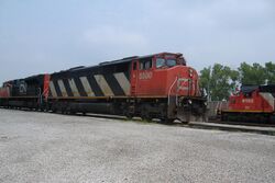 Beginning in the early summer months of 2010, CN purchased a small order of GE C40-8's and GE C40-8W's from Union Pacific and BNSF Railway, respectively. The intent was to use them as a cheaper power alternative. CN currently have 65 GE ES44ACs on its roster and all 65 were ordered and delivered from December 2012 to December 2013. They are CN's first AC-powered locomotives. In 2015, CN started ordering more GE units, the ET44AC.[62]