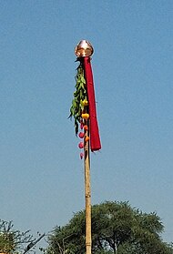 Presently in the Indian subcontinent central poles are features of temple settings such as Hinglaj Mata (Sindh), Khambadev (Maharashtra),[6] Nimad (Madhya Pradesh), Gogaji (Rajasthan), and Khambeshvari (Odisha).[7] Ceremonial poles are also prominient in festivals, ceremonial dances, and celebrations such as Gudi Padwa, Kathi Kawadi,[6] Jatara Kathi, and Nandi Dhwaja.[8]
