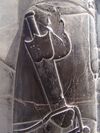 The earliest known depiction of a cross-hilt dagger is the so-called "Guido relief" inside the Grossmünster of Zürich (c. 1120).[29] A number of depictions of the fully developed cross-hilt dagger are found in the Morgan Bible (c. 1240). Many of these cross-hilt daggers resemble miniature swords, with cross guards and pommels very similar in form to swords of the period.[30] Others, however, are not an exact match to known sword designs, having for example pommel caps, large hollow star shaped pommels on so-called "Burgundian Heraldic daggers" or antenna style cross and pommel, reminiscent of Hallstatt era daggers.[31] The cross-hilt type persisted well into the Renaissance[32]