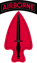 Many nations use the dagger pattern in the form of the bayonet.[52] Daggers are commonly used as part of the insignias of elite military units or special forces, such as the US Army Special Operations Command, the US Army Special Forces, or the Commando Dagger patch for those who have completed the British All Arms Commando Course.