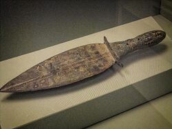 Copper daggers appeared first in the early Bronze Age, in the 3rd millennium BC,[12] and copper daggers of Early Minoan III (2400–2000 BC) were recovered at Knossos.[13]
