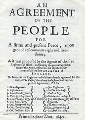 Isolated strands of liberal thought that had existed in Western philosophy since the Ancient Greeks began to coalesce at the time of the English Civil War. Disputes between the Parliament and King Charles I over political supremacy sparked a massive civil war in the 1640s, which culminated in Charles' execution and the establishment of a Republic. In particular, the Levellers, a radical political movement of the period, published their manifesto Agreement of the People which advocated popular sovereignty, an extended voting suffrage, religious tolerance and equality before the law. The impact of liberal ideas steadily increased during the 17th century in England, culminating in the Glorious Revolution of 1688, which enshrined parliamentary sovereignty and the right of revolution, and led to the establishment of what many consider the first modern, liberal state.[22] Significant legislative milestones in this period included the Habeas Corpus Act 1679, which strengthened the convention that forbade detention lacking sufficient cause or evidence. The Bill of Rights formally established the supremacy of the law and of parliament over the monarch and laid down basic rights for all Englishmen. The bill made royal interference with the law and with elections to parliament illegal, made the agreement of parliament necessary for the implementation of any new taxes and outlawed the maintenance of a standing army during peacetime without parliament's consent. The right to petition the monarch was granted to everyone and "cruel and unusual punishments" were made illegal under all circumstances.[23][24] This was followed a year later with the Act of Toleration, which drew its ideological content from John Locke's four letters advocating religious toleration.[25] The Act allowed freedom of worship to Nonconformists who pledged oaths of Allegiance and Supremacy to the Anglican Church. In 1695, the Commons refused to renew the Licensing of the Press Act 1662,[26] leading to a continuous period of unprecedented freedom of the press.
