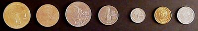 The coins currently in circulation are disc-shaped and include Guatemala's national coat of arms on the obverse.[2] The coins, and their reverse designs are: